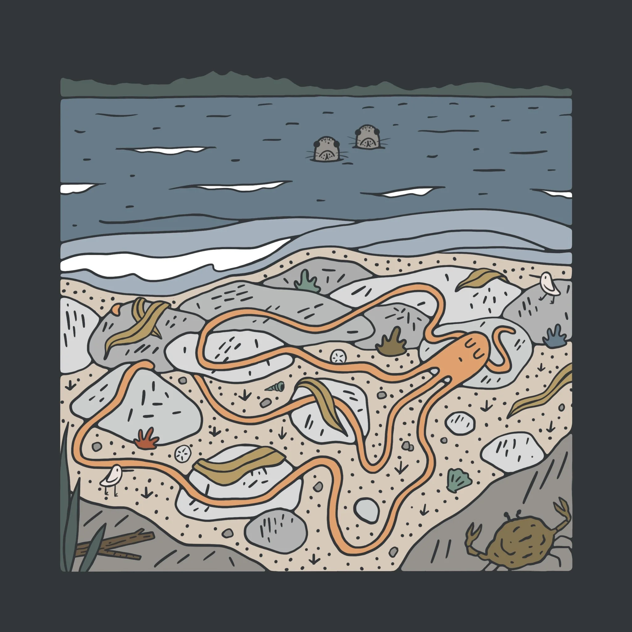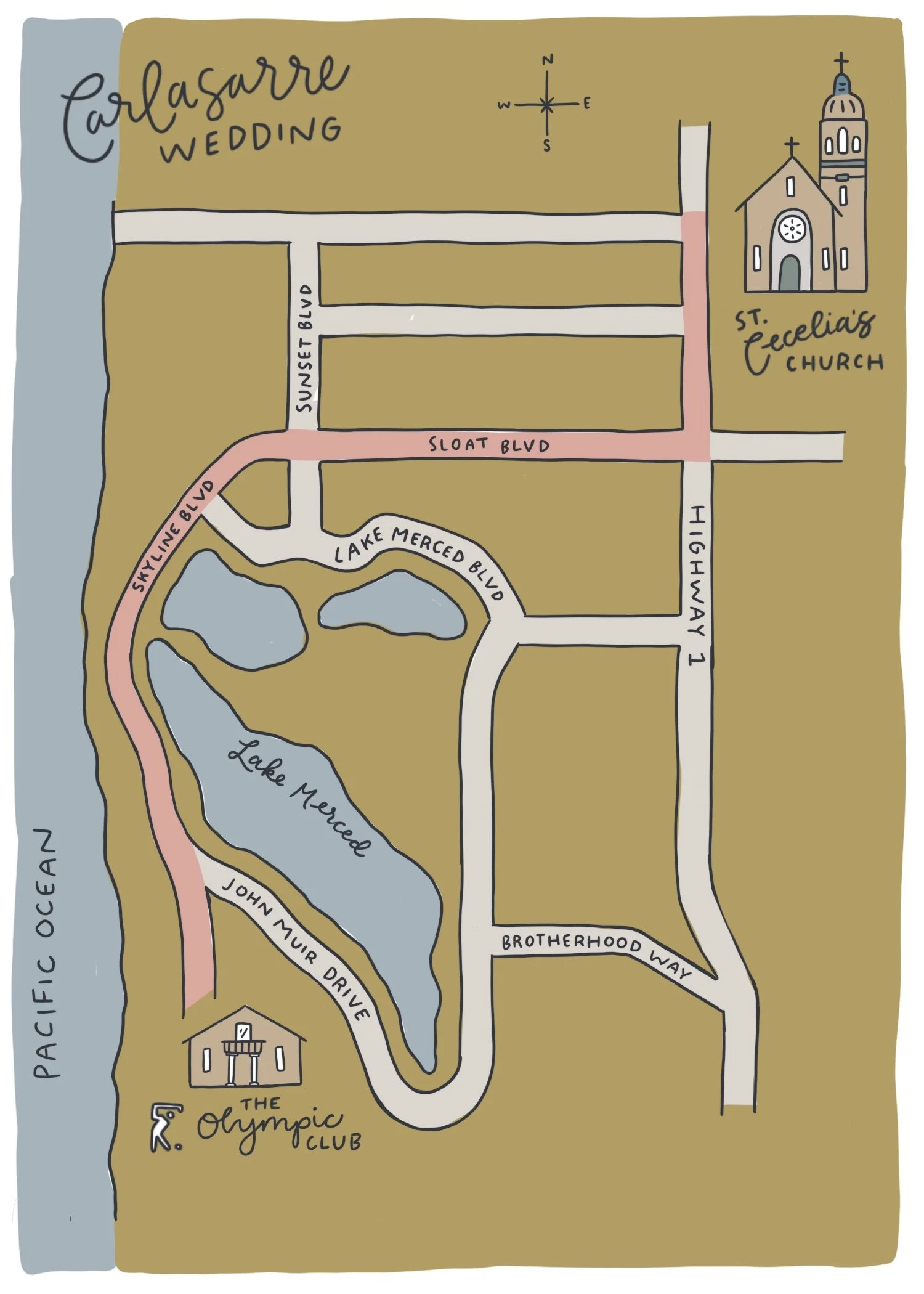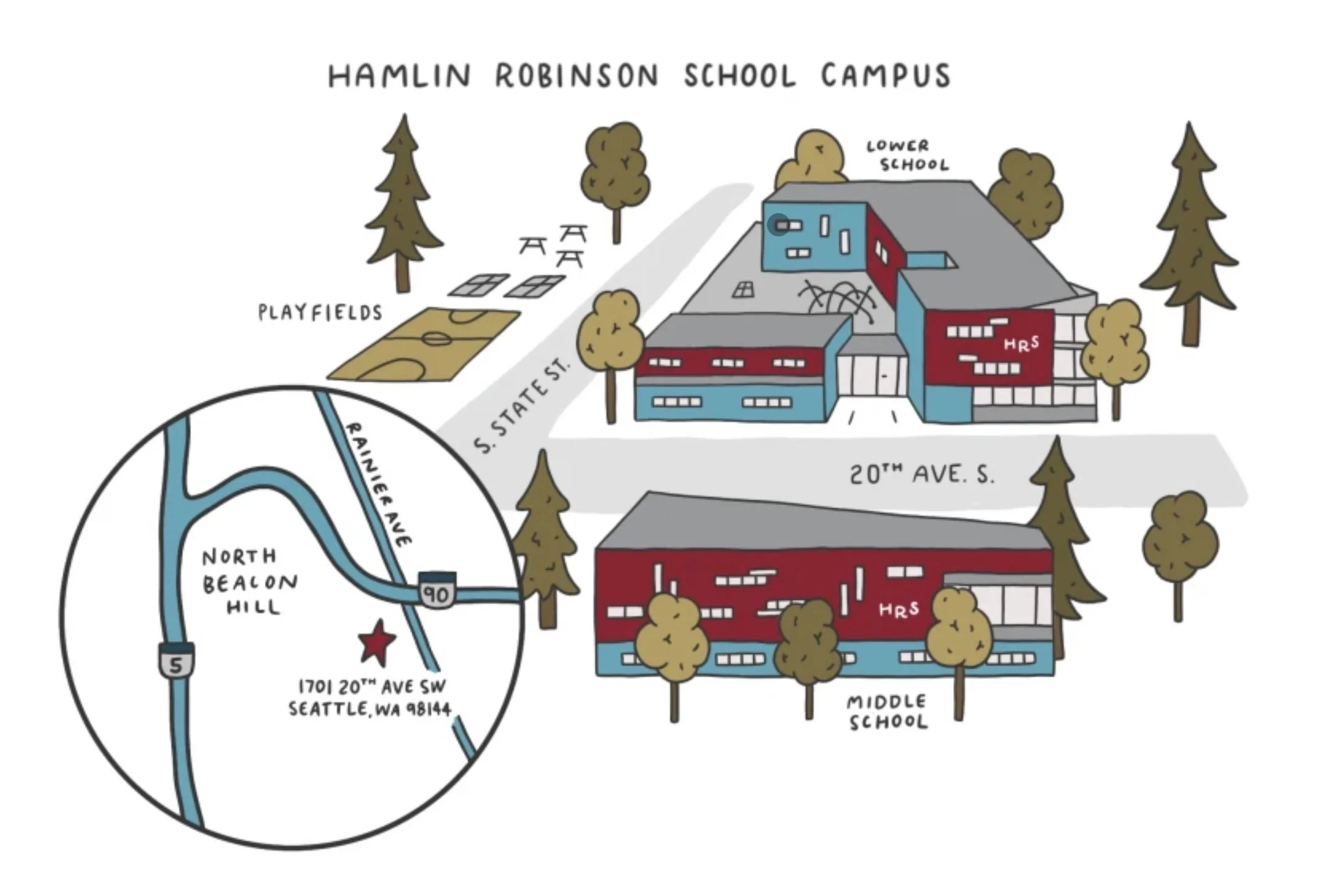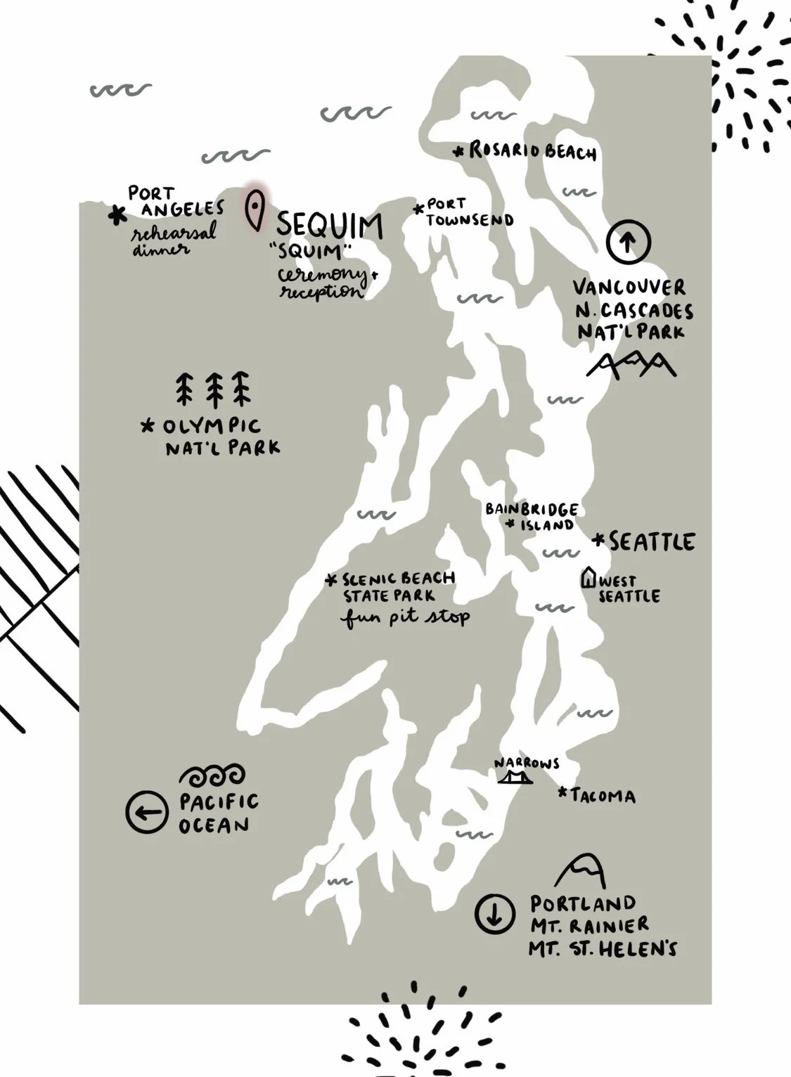 Carefully designed maps help visitors navigate new areas, whether it’s a school campus, Airbnb guide, or wedding and reception locations. Becky strategically designs maps to feel approachable and useful. These maps are an excellent example of Becky’s ability to mix traditional graphic design principles with playful illustration.