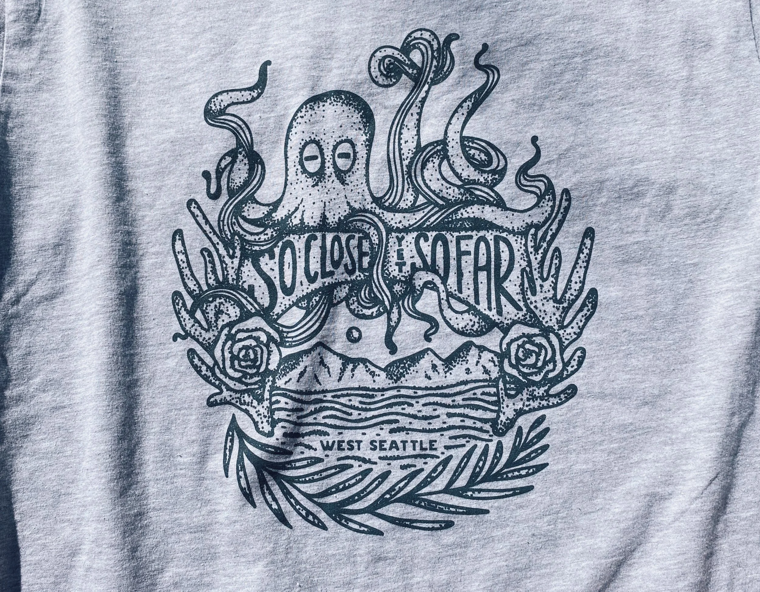 Becky designs apparel from t-shirts to cups to tote bags and more. Most notably, her So Close, Yet So Far t-shirt design for the West Seattle Junction Business Association was sold in local stores across the Seattle area. Other fun projects include stickers for a scuba organization, custom pet cups for an event, a fishing tournament t-shirt, and more.