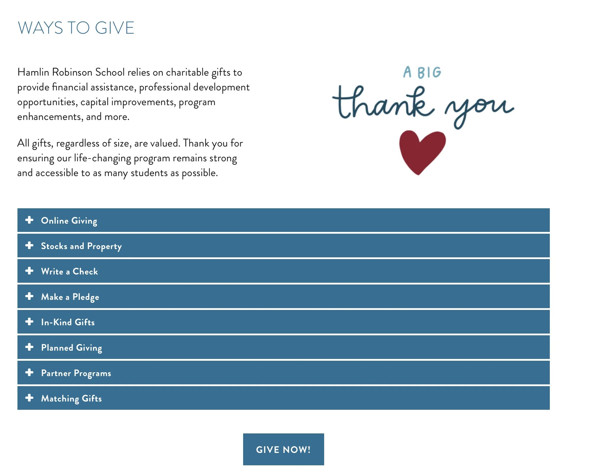 Hamlin Robinson School’s website framework was specifically tailored to an audience with dyslexia and other language-based learning challenges. Iconography, photography, and strategic use of typography were used to clearly communicate to an audience including current and prospective families, donors, volunteers, and community members. View the testimonials webpage for a sample of Becky’s web design and video production used together. Each video was produced by Becky.