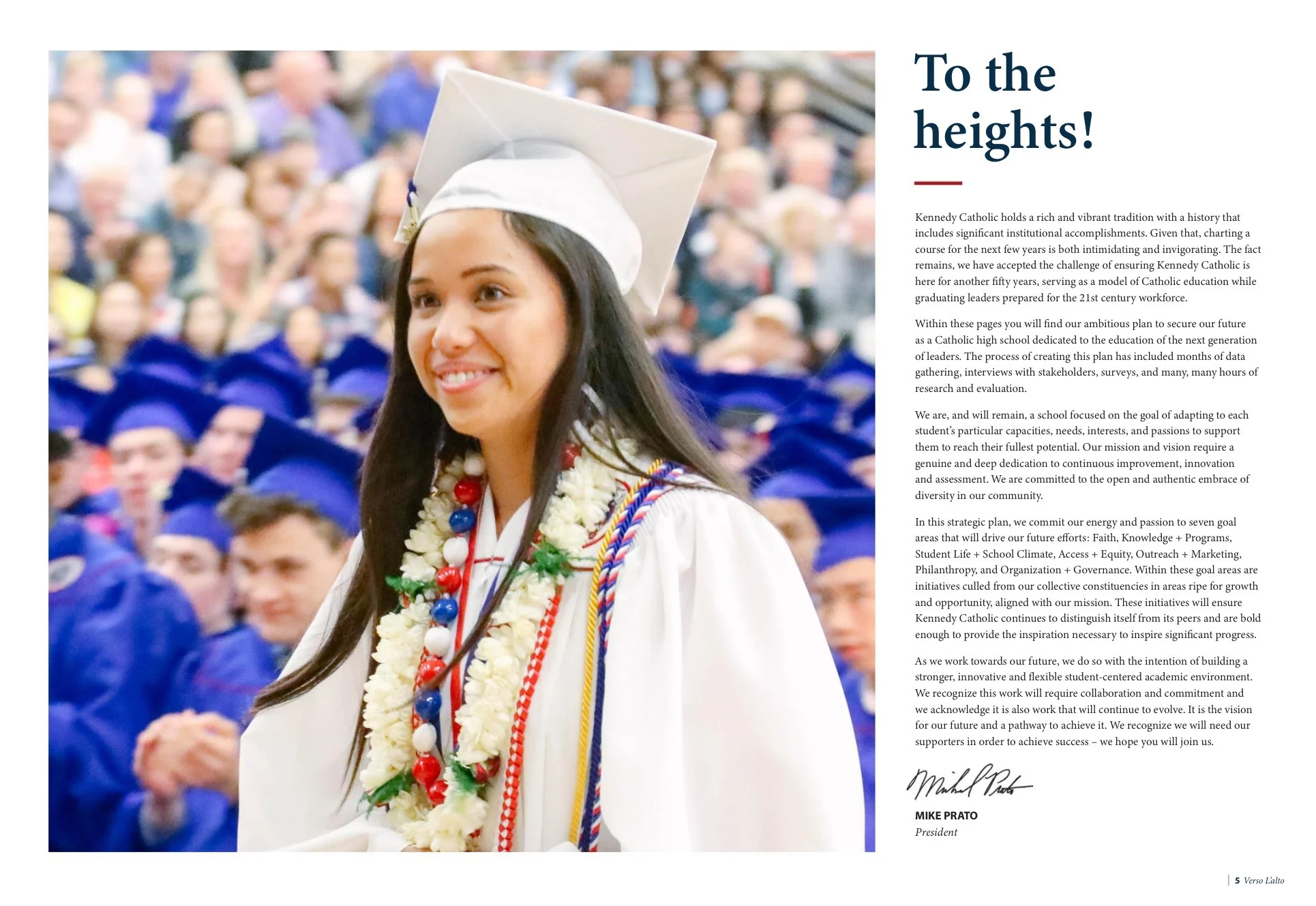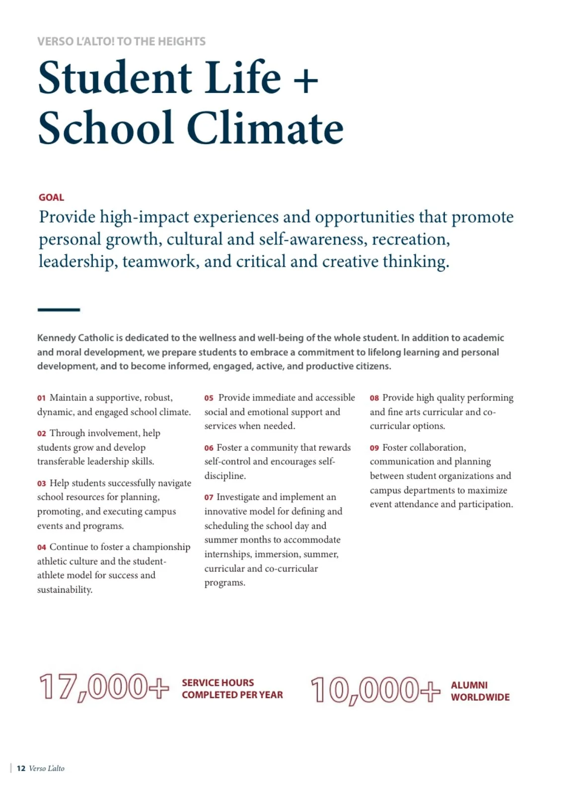 The Kennedy Catholic High School strategic plan was an important printed document that required detailed use of hierarchy to clearly convey dense information to a variety of stakeholders.