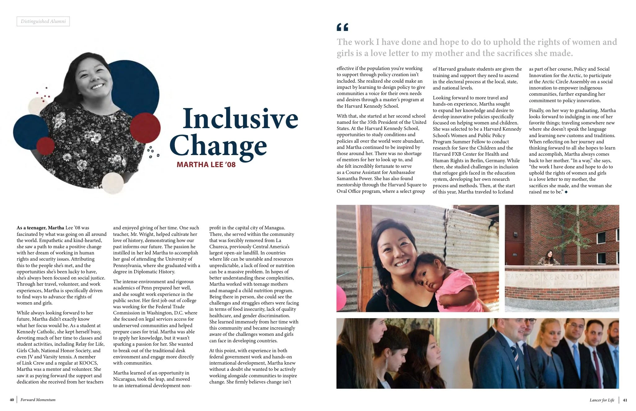 Becky first decided how best to categorize the content, then created sketches for each spread. Lastly, she designed the project in Indesign with special attention to small details, custom illustrations, and impactful photography to share strategic information as well as highlight the passion for the community and the future. Click on any image below to view details.